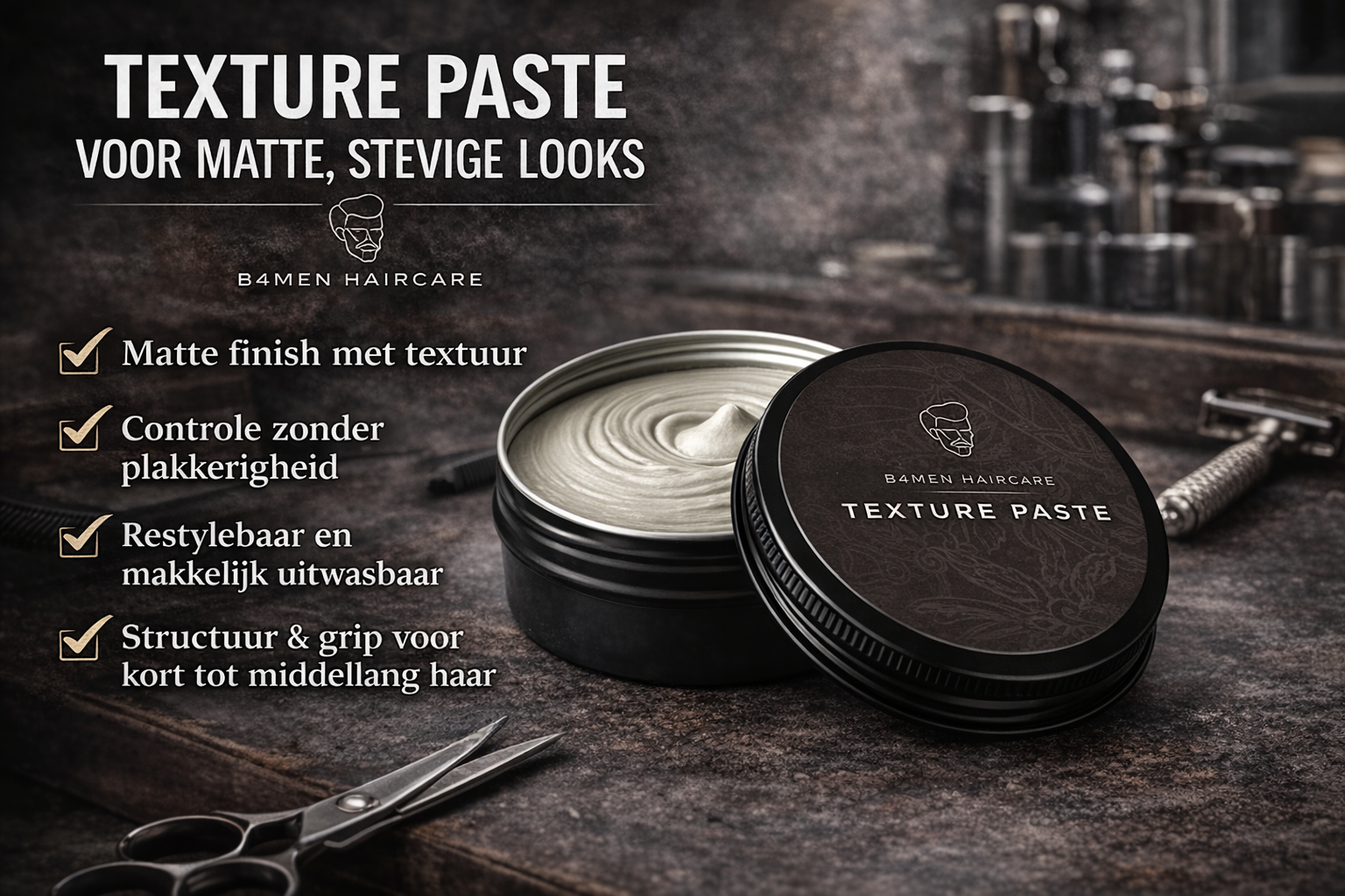 Na meer dan 25 jaar achter de stoel weet ik precies wat er mist in de meeste haarproducten voor mannen. Te veel beloftes, te weinig resultaat. Dat is de reden dat ik besloot mijn eigen lijn te maken: B4men Haircare.