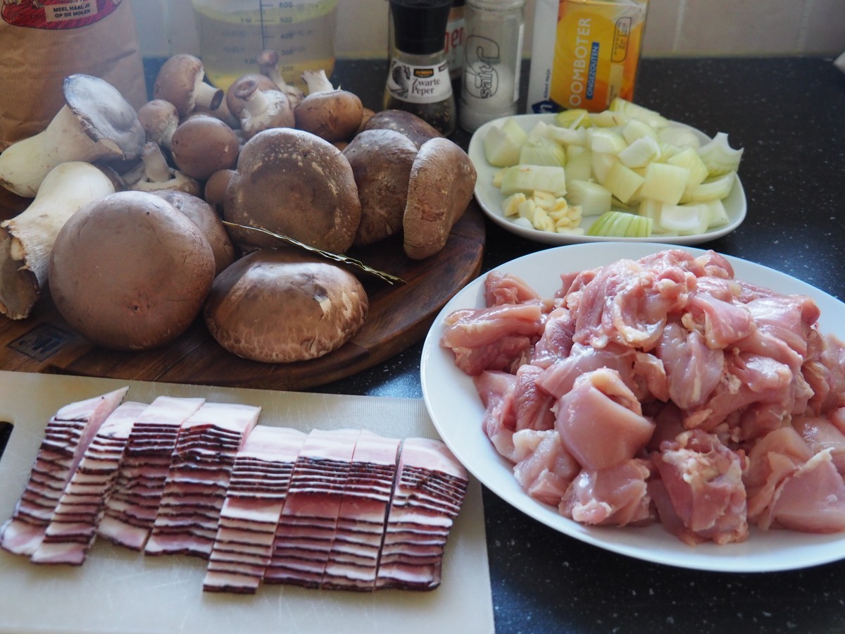 7 Doe de deksel op de pan en laat de kip 1 uur op laag vuur pruttelen (langer mag natuurlijk)