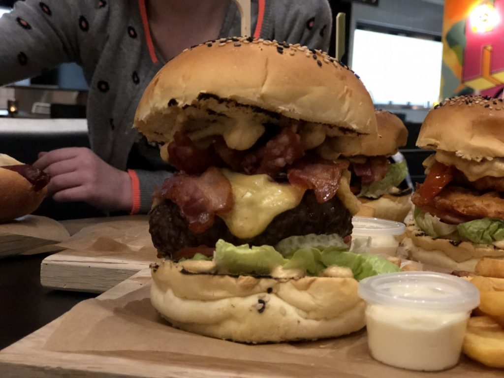 We werden opgepakt door een super relaxte en vriendelijk ober. Deze Ier woont en werkt nog niet heel lang in Nederland maar wist ons toch snel thuis te laten voelen. Zijn vriendelijkheid zorgde ervoor dat wij wat ontspande na de bijzondere start. Wat kan je verwachten van het eten? Het is een hostel en je moet dus geen hoogstaande culinaire gerechten verwachten.Dat vinden wij niet erg hoor, want een goede burger is voor ons een ultiem gevoel van genieten. Marie Louise, Beaudine en ik namen alle drie een verschillende burger en Amaranthe koos voor een hotdog. Nu is het ons vaker opgevallen dat het maken van een goede burger echt nog wel een kunst is. Deze kunst bezitten ze bij The Dude zeker! De burgers waren super lekker. Het vlees was mals en goed gekruid en de buns ook van goede kwaliteit. Bij iedere hap die wij namen werd de sfeer beter en zaten we meer en meer op ons gemak. Nadat wij klaar waren met ons eten vroeg Amaranthe of we een spelletje wilde doen. Tja, best een gek idee in een restaurant maar wat een leuke aanvulling. Na een potje rummikub kwam ons toetje. Ook de toetjes waren lekker, niet heel bijzonder maar gewoon goed. Door de ongedwongen sfeer en het relaxte gevoel bleven wij langer hangen dan dat wij anders hadden gedaan. De kids vonden deze avond één van de leukste die wij voor de blog hebben gedaan. Tja, het kan raar lopen.