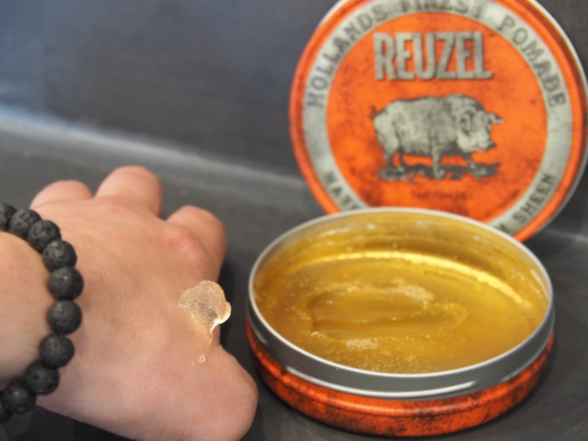 De groene Reuzel is echt een heel andere Pomade dan de rode en de blauwe reuzel. Dit was de eerste Reuzel op een oliebasis en dus vet! Deze Pomade moet je dan ook echt uitwassen met een shampoo, met alleen water redt je het niet. De groene variant blijft soepeler in het haar en geeft iets meer glans dan de rode Pomade. Omdat de groene variant dus op een oliebasis is, maakt hij het haar ook wat zwaarder. Daardoor is hij minder geschikt voor een hoge kuif, maar wel super voor een Pompadour of een strak achterovergekamd kapsel. Hij heeft een licht pepermuntachtige geur zonder dat dit heel aanwezig is. Veel mannen denken dat ze de groene Reuzel als een wax kunnen gebruiken, maar daarvoor geeft deze Pomade (de naam zegt het al) teveel glans.